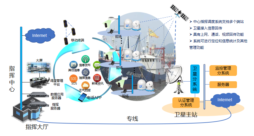 本案例使用場(chǎng)景是在海上的漁船,主要解決客戶海上通訊、上網(wǎng)、以及數(shù)據(jù)的回傳(視頻監(jiān)控,位置信息,航行軌跡等)等需求,在遇到險(xiǎn)情的時(shí)候可以一鍵報(bào)警,漁業(yè)管理部門也可以實(shí)現(xiàn)對(duì)漁船的有效監(jiān)管。